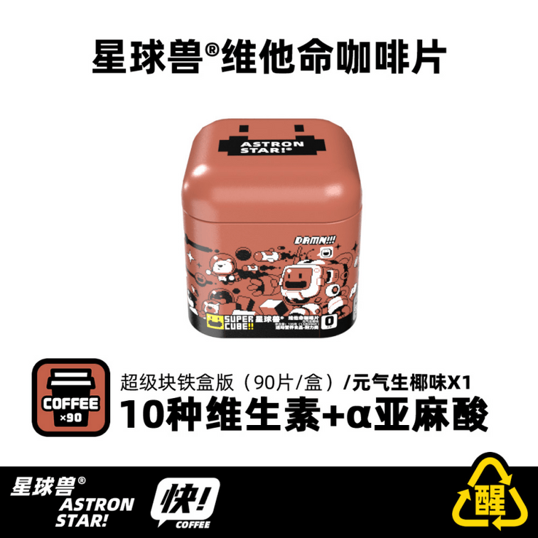 【中國直郵】 星球獸 第 4 代濃縮咖啡片90片 FDA認證 清潔配方 十種維他命協同 麥盧卡蜂蜜賦能 小巧易攜帶 即食