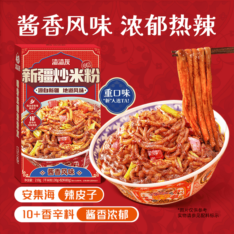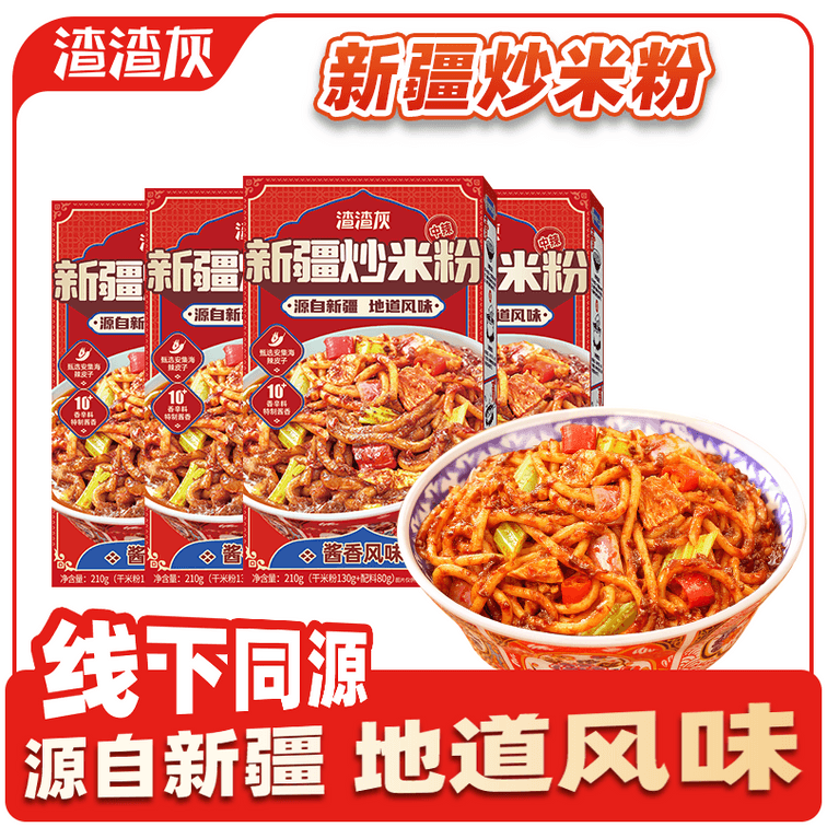 【中國直郵】 渣渣灰 新疆炒米粉 中辣 醬香風味 210g*4盒