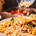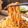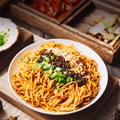 1.將麵條放入沸水中煮2到2分半鐘,用筷子輕輕攪拌麵條,切勿超過時間 2.關火用筷子挑起麵條,盡量瀝乾多餘水分放入盤中 3.依個人口味,適量加入配製醬油和油辣椒,將麵條挑拌均勻、鬆散 4.加入花生芝麻碎、芽菜粒進行再次挑拌;配上自家準備的鮮蔥花味道更香