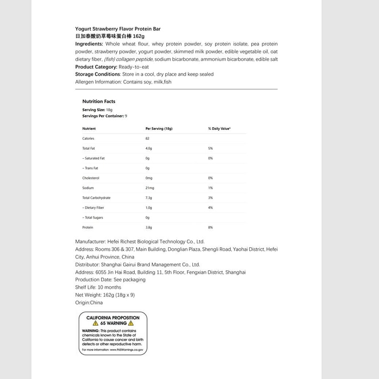 日加泰 【優格草莓口味】乳清蛋白棒威化餅乾健康代餐 9包/盒【酸甜果味 熱量不過百兼顧輕盈與健康 根根有料 口口滿足】