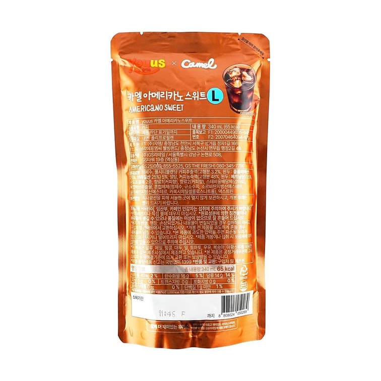 韓國YOU US友施 甜美式黑咖啡 340ml【韓國GS25便利店同款】【清爽夏日冰飲】
