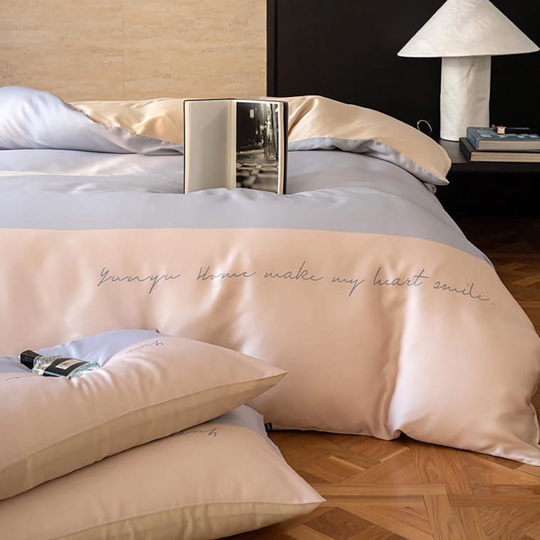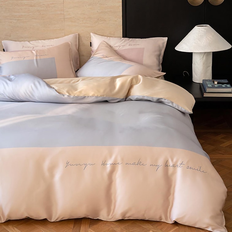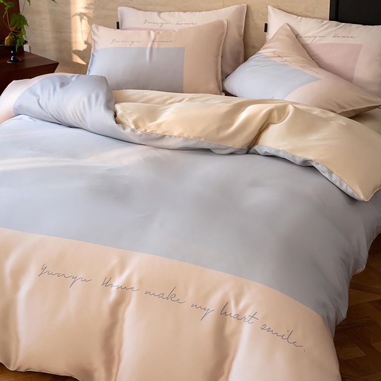YUNYU芸裕家居 簡約輕奢雙拼60S蘭精天絲四件組 夏天必備床品 清涼透氣 淡雅藍 200cm×230cm