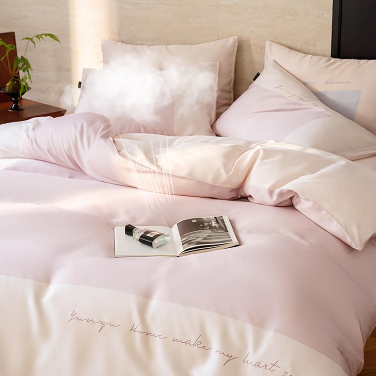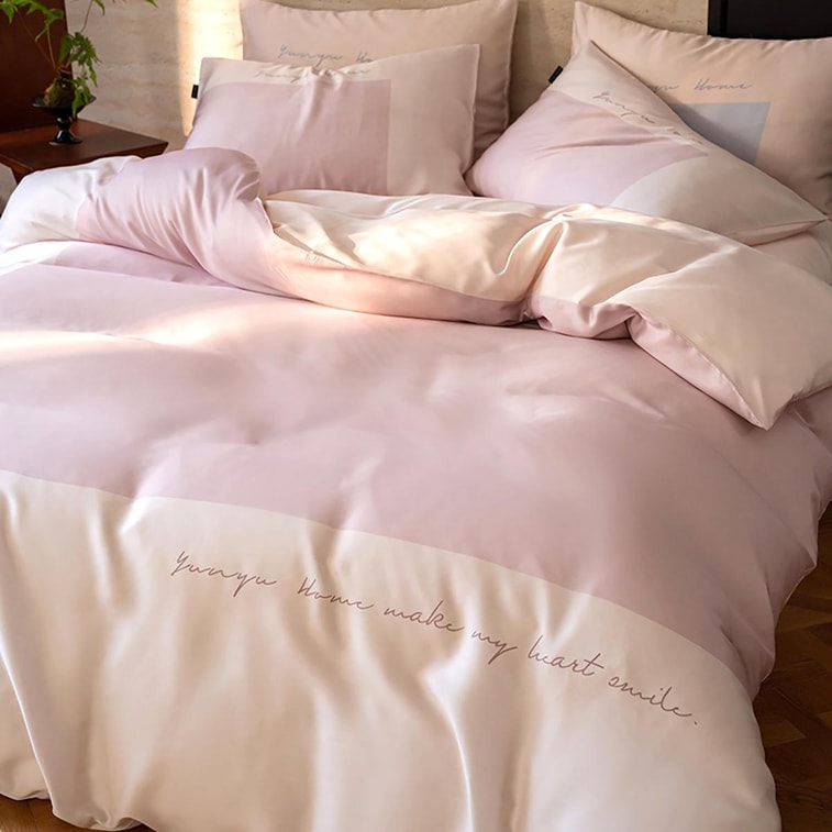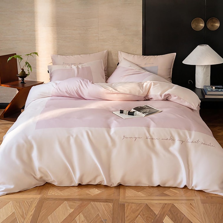 YUNYU芸裕家居 簡約輕奢雙拼60S蘭精天絲四件組 胭脂粉 220cm×240cm
