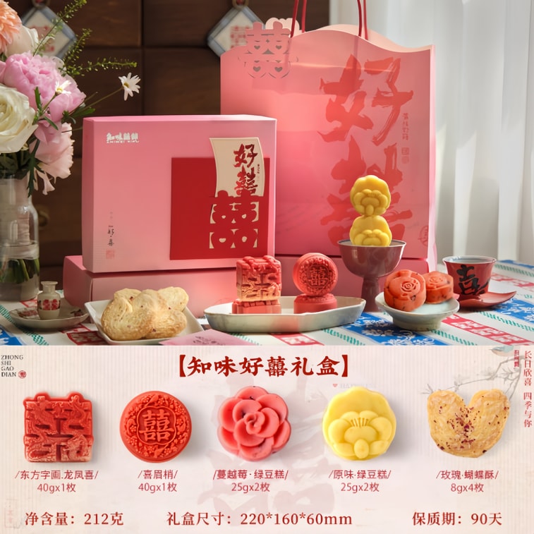 【中國直郵】 知味觀 知味好囍喜字餅糕點禮盒 212g 新中式訂婚結婚喜宴回禮寶寶宴伴手禮品