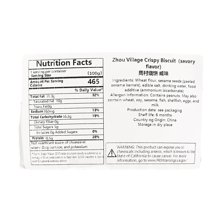 週村燒餅 香酥芝麻餅 鹹味 80g【薄香酥脆】【山東特產】【中華老字號】