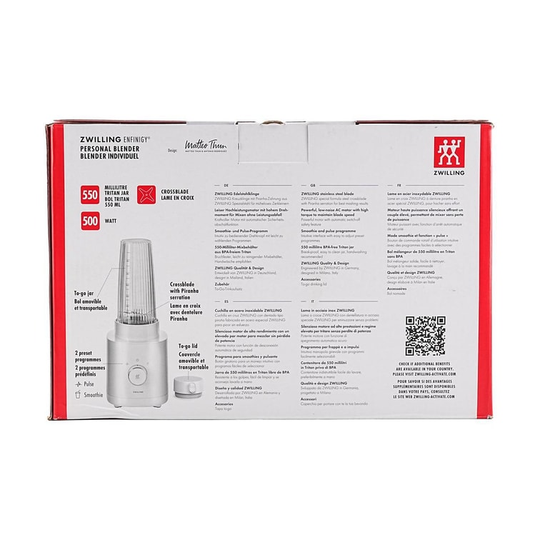 德國ZWILLING雙立人Enfinigy系列 迷你果汁機隨身杯子破壁機攪拌機 單人份攪拌機 白色