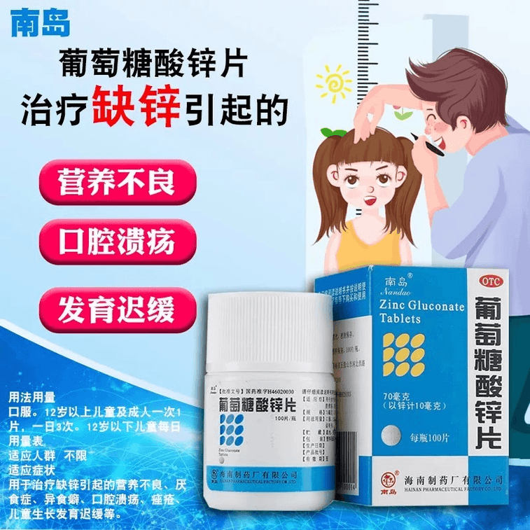 南島牌 葡萄糖酸鋅片 厭食 營養不良 口腔潰瘍發育遲緩 OTC專業補鋅 70mg*100片*1瓶(成人兒童皆可)