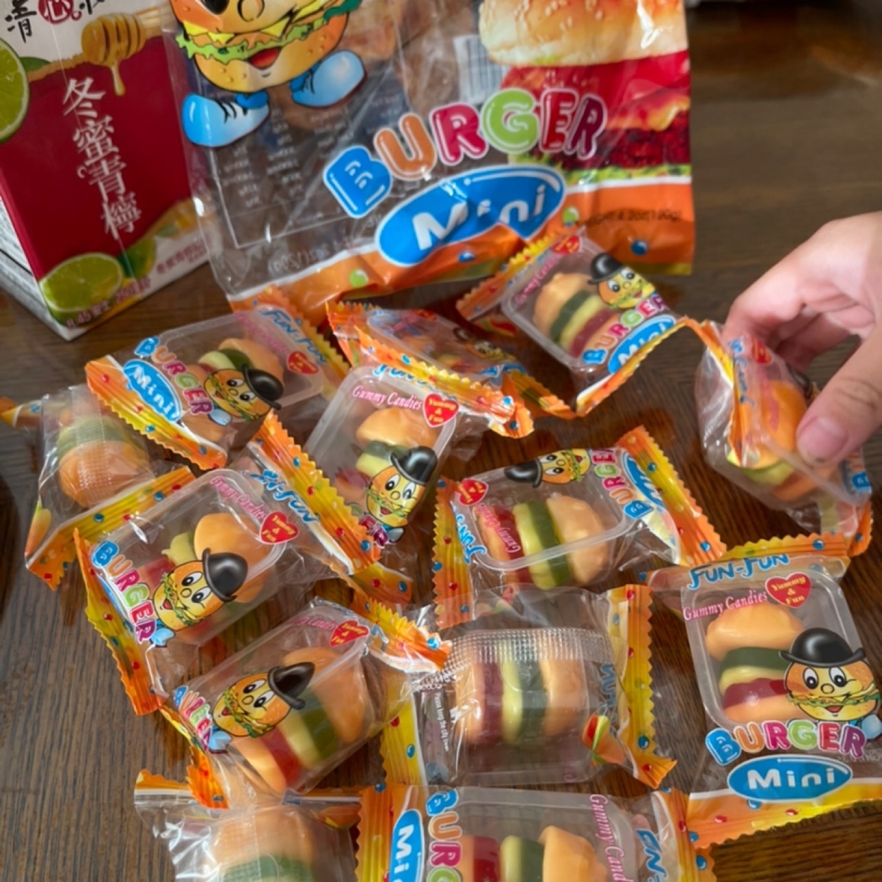 (❤️88) these mini burgers gummies 🍔 are so cute ☺️ and soft. They're colorful and they actually have the color of a real burger 🍔. They each have individual packaging and is very mini and convenient to carry around. They are chewy and tasty 😋. Kids love 💕 them.