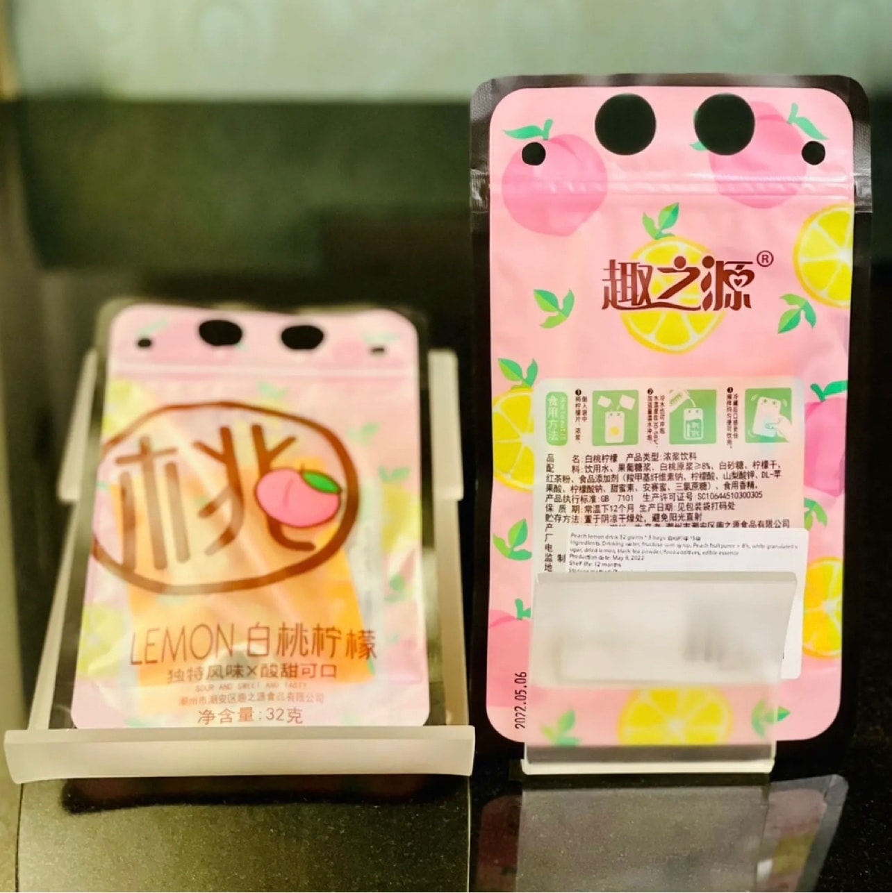The White Peach Lemon drink from the source of fun is easy to carry and easy to make. This instant flower and fruit tea can be opened directly from the top seal without using scissors. The net content of each is 32 grams.