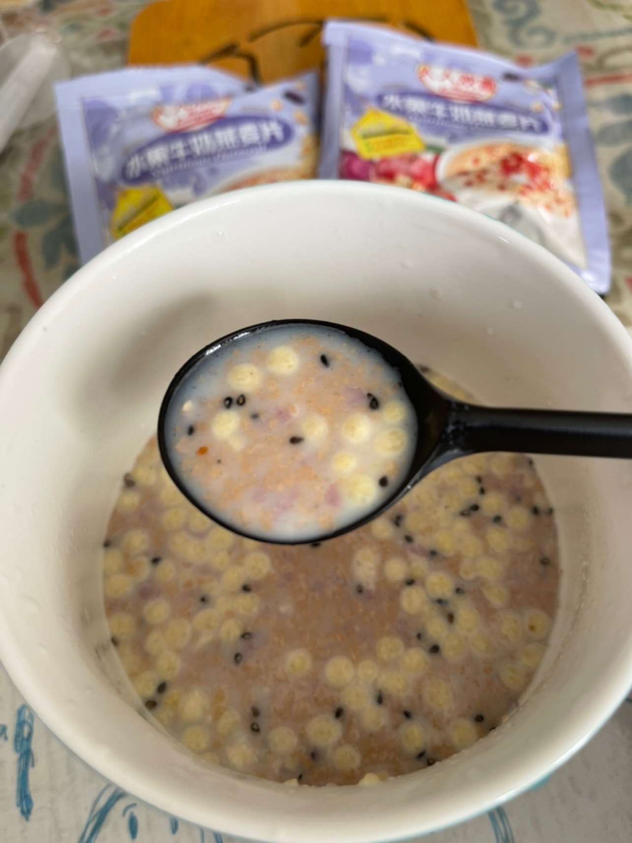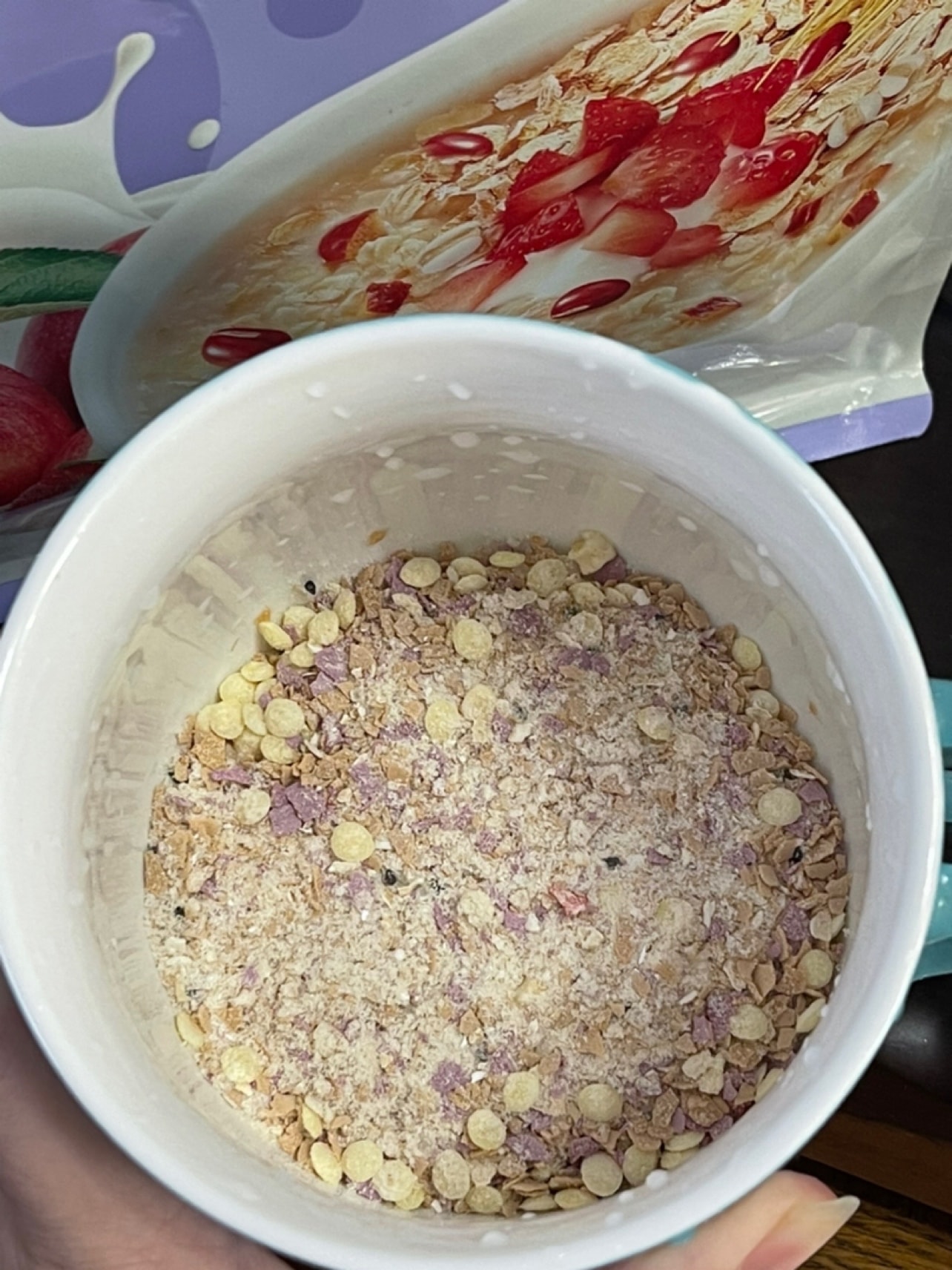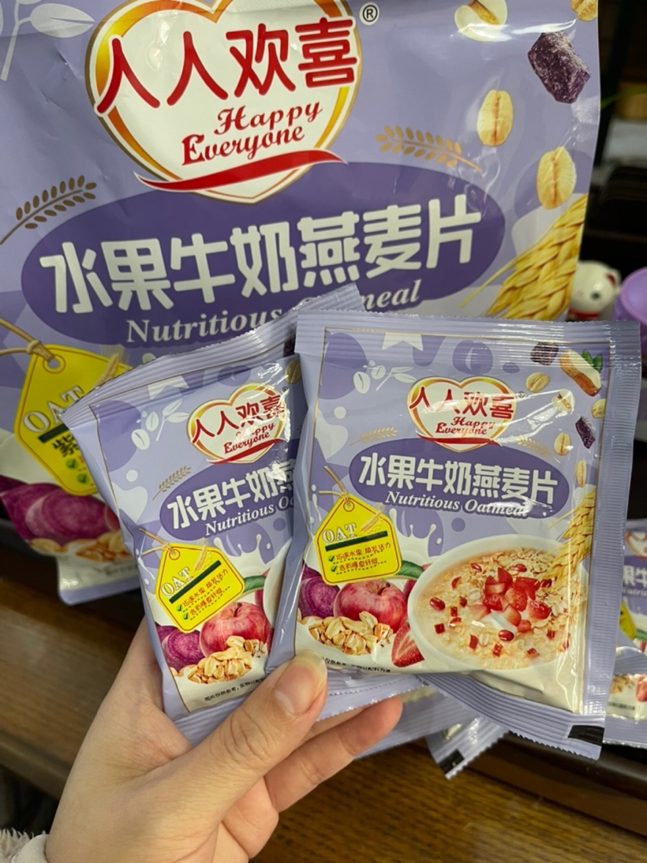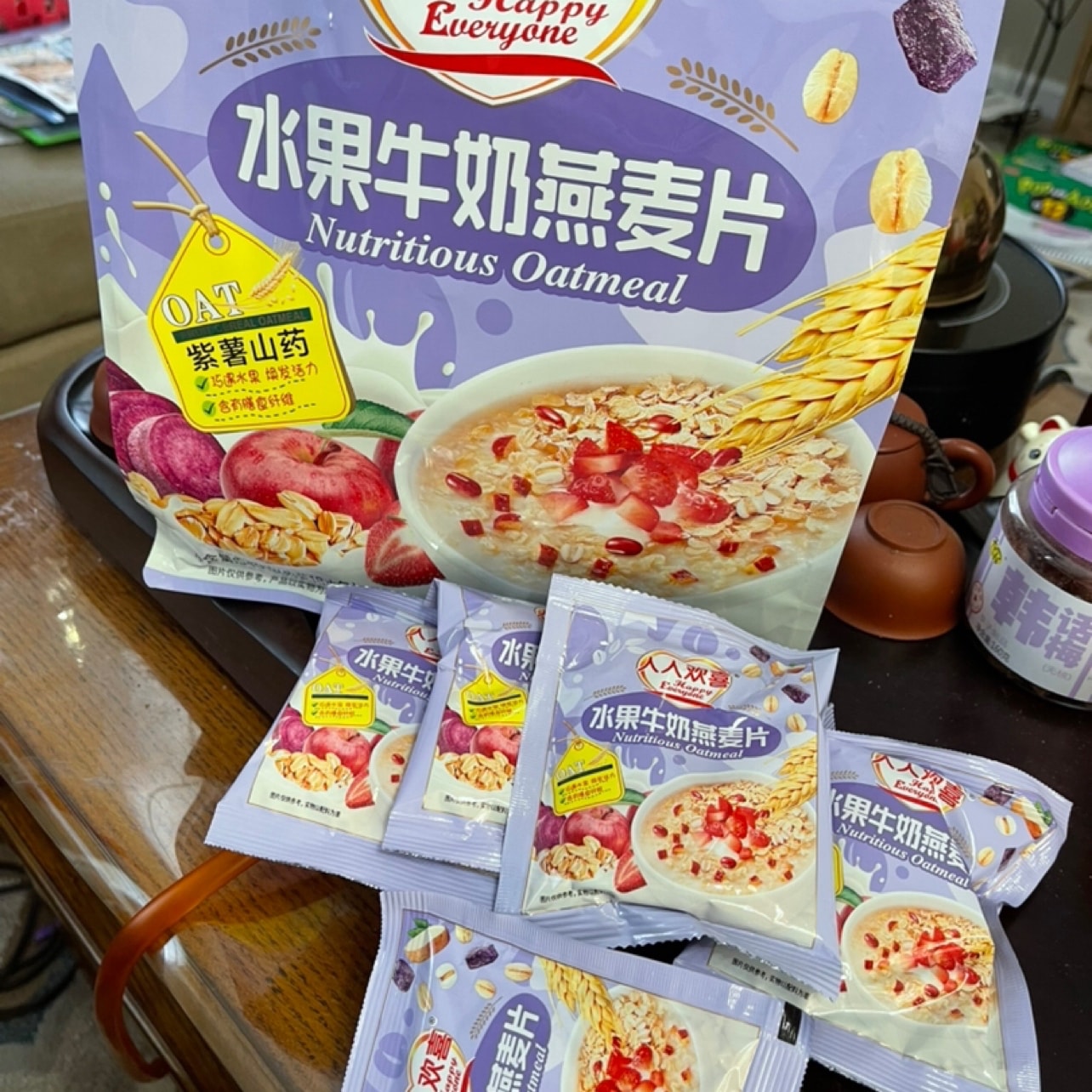 Everyone is happy➡️Purple sweet potato and yam oatmeal, the content is quite rich, there are purple sweet potato fragments, and a lot of black sesame seeds, so it tastes very fragrant with sesame flavor! However, I didn’t taste any fruity flavor. When brewed, the milk was quite bland and had a sweet taste! I bought it especially for breakfast!