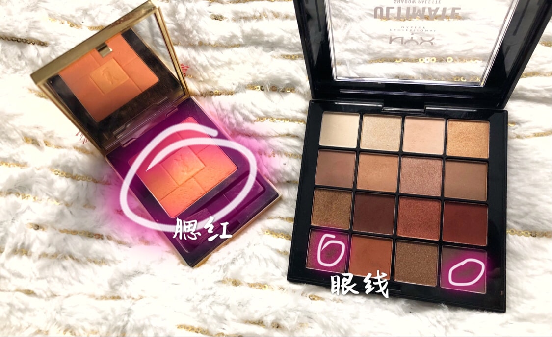 就比如今天的:眼影用的是腮红。眼线用的是眼影。