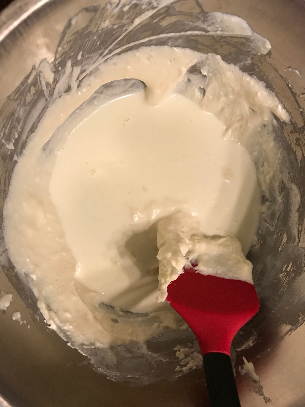 10Add whole egg liquid in three times and mix well