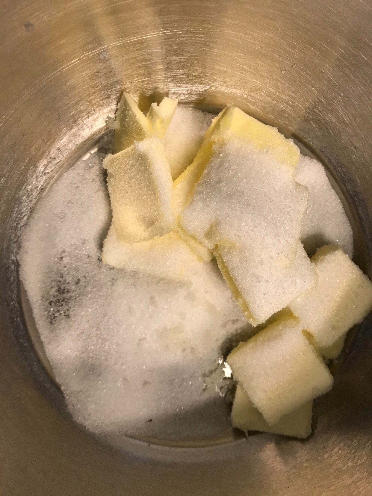 75克半软化的黄油➕30克糖➕少许盐,用搅拌机搅拌至黄油微白