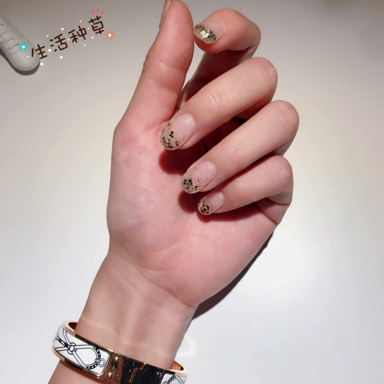 但是为了简约做了类似于法式美甲的渐变金闪片