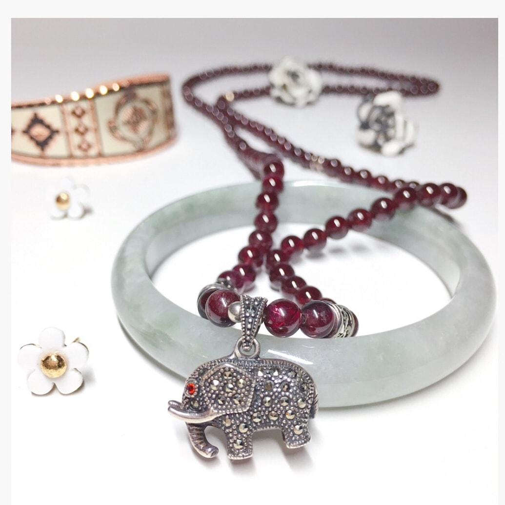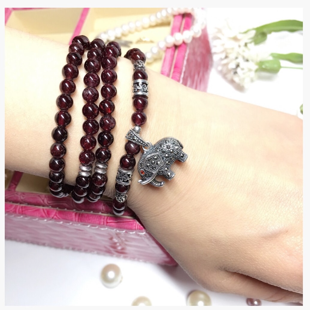 🌷我的生日是一月,所以我的生日石是石榴石,虽然我最爱的的是二月生日的紫水晶🔮,可是没办法,生日改不了😂😂我最爱的配饰又是手链,所以怎么也得有几串石榴石的手链不是😝😝 🌷这款石榴石手链是我最爱的一个,石榴石也就那样的一种石头了,做不成花儿来了,所以挂坠就显得格外重要,这款手链里的泰银福象是我一眼看去就喜欢的,眼睛是红色小晶石镶嵌,点缀在串珠之间的纯银金刚杵和路路通看上去也是格外有沧桑感,配上殷红的石榴石相应成章遥相呼应,戴在腕上,嗯,怎么看怎么好看,哈哈😍😍😍算是我淘宝的比较满意的一款啦 🌷最后附上生日石:一月石榴石,二月紫水晶,三月海蓝宝石,四月钻石 ,五月祖母绿,六月珍珠或月光石,七月红宝石,八月橄榄石,九月蓝宝石,十月碧玺,十一月蓝黄玉(托帕石),十二月绿松石或锆石 # 百万积分第五季 # # 什么值得买 #