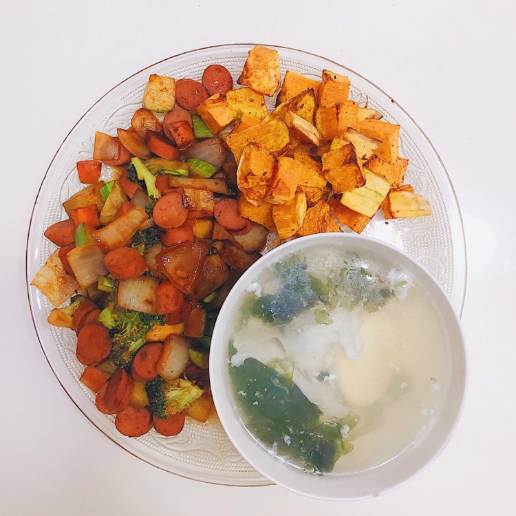 今天中午吃海带豆腐汤➕两个小菜
